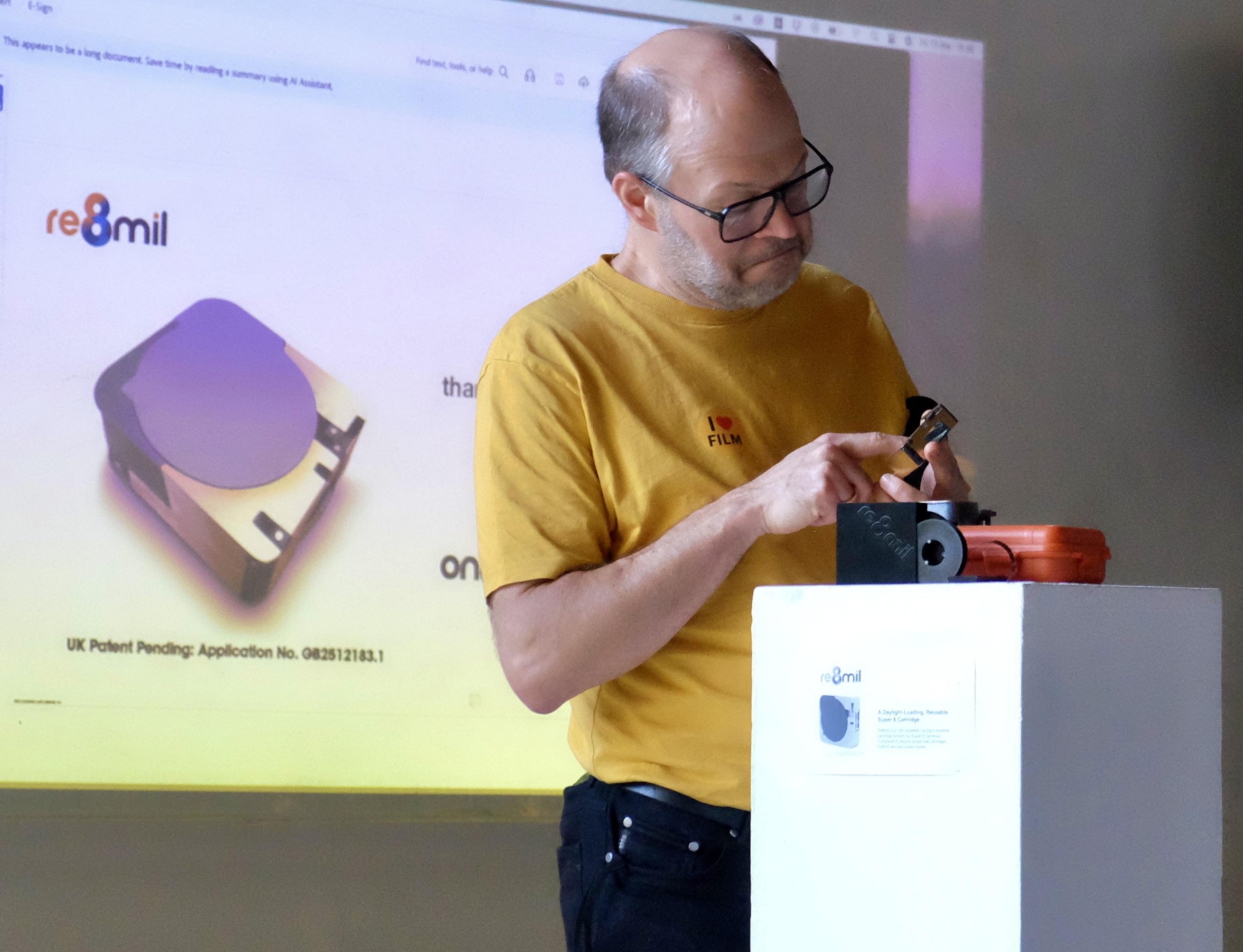 - Edmund Ward von on8mil aus Großbritannien mit der neu entwickelten ladbaren Super 8 Kassette.