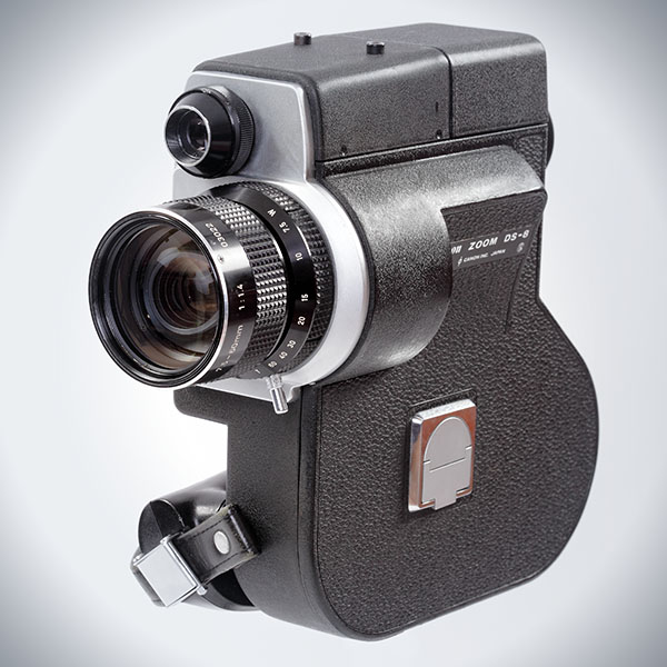 Scoopic DS-8, 1970, Double Super 8 Model in 16mm housing, 7.5 to 60 mm (f/1.4) zoom lens from the Canon Auto Zoom 814, shooting speeds: Single frame, 12, 18, 24, 36, 54 fps, 0-165 degree variable shutter, e.g., For shooting headlights on full beam and fade-outs