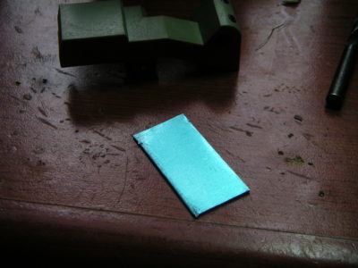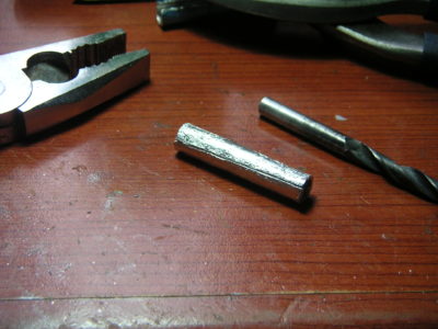 - Start with a small slab of aluminum sheeting (figure 1). Roll it around a drill bit to create a cylindrical sleeve (figure 2). The drill bit must have the same diameter as the hole in the pinchroller lever.
