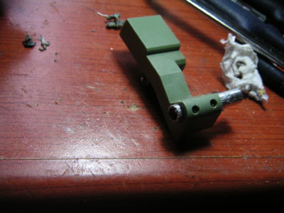 - Drill screw holes into the cylinder that correspond with the existing screw holes in the pinchroller lever. This is vital to solidly attach the lever to the shaft (figure 5).
