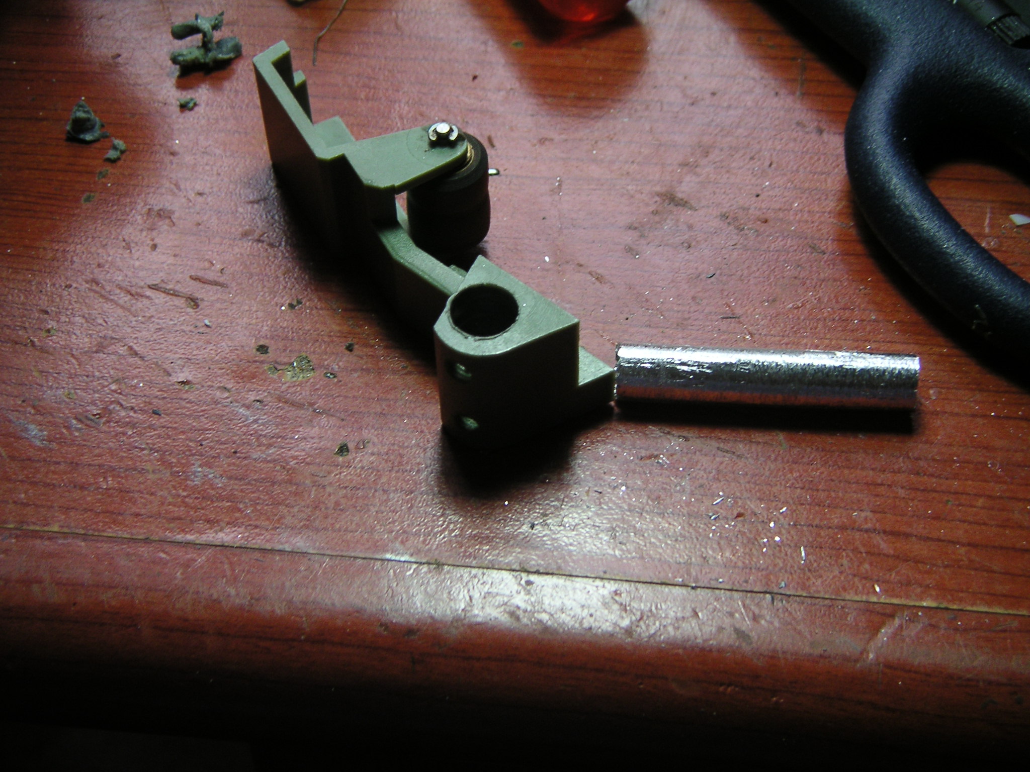 - 4. The modified pinchroller lever, showing the enlarged hole and new metal sleeve alongside.