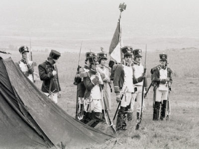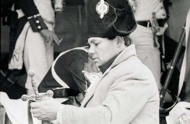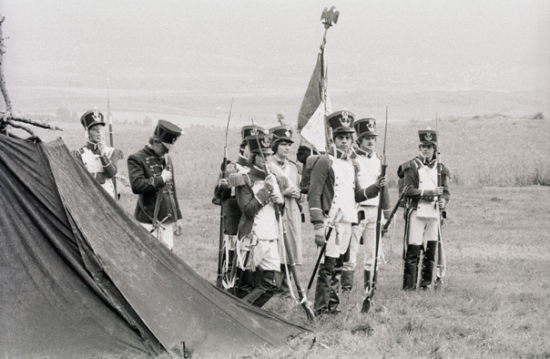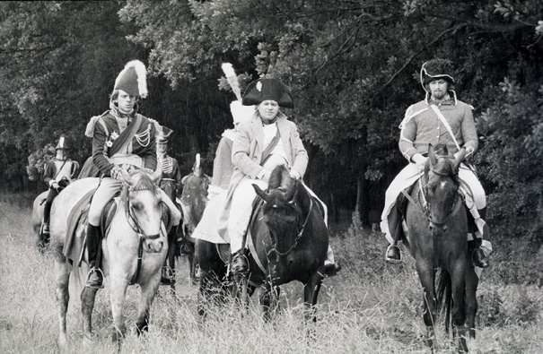 He got together with eight friends to discuss the screenplay. Krone sketched drawings for every scene. This was the plot: Bernard Rousseau is enlisted by the military in France. He falls for the uniforms. “He was blinded by the colors of the smart clothes,” explains Krone. He loses his best friend at the great battle of Borodino and deserts with two other soldiers. On their escape, they cross paths with some rebels and a general. Rousseau is captured with his friend Michele, but he manages to escape. However, his friend is shot. Napoleon’s Grandee Armee is finally smashed in the battle of Beresina. Rousseau comes across countless corpses and takes a telegram from a dead Belgian and pretends to be a courier rider. Thus, he announces the end of the battle in Moscow and finally returns home. “The whole story is told in flashback. One sees the central figure as an old grandfather, who tells everything to his grandson when he comes through the door with a saber,” recalls Krone.